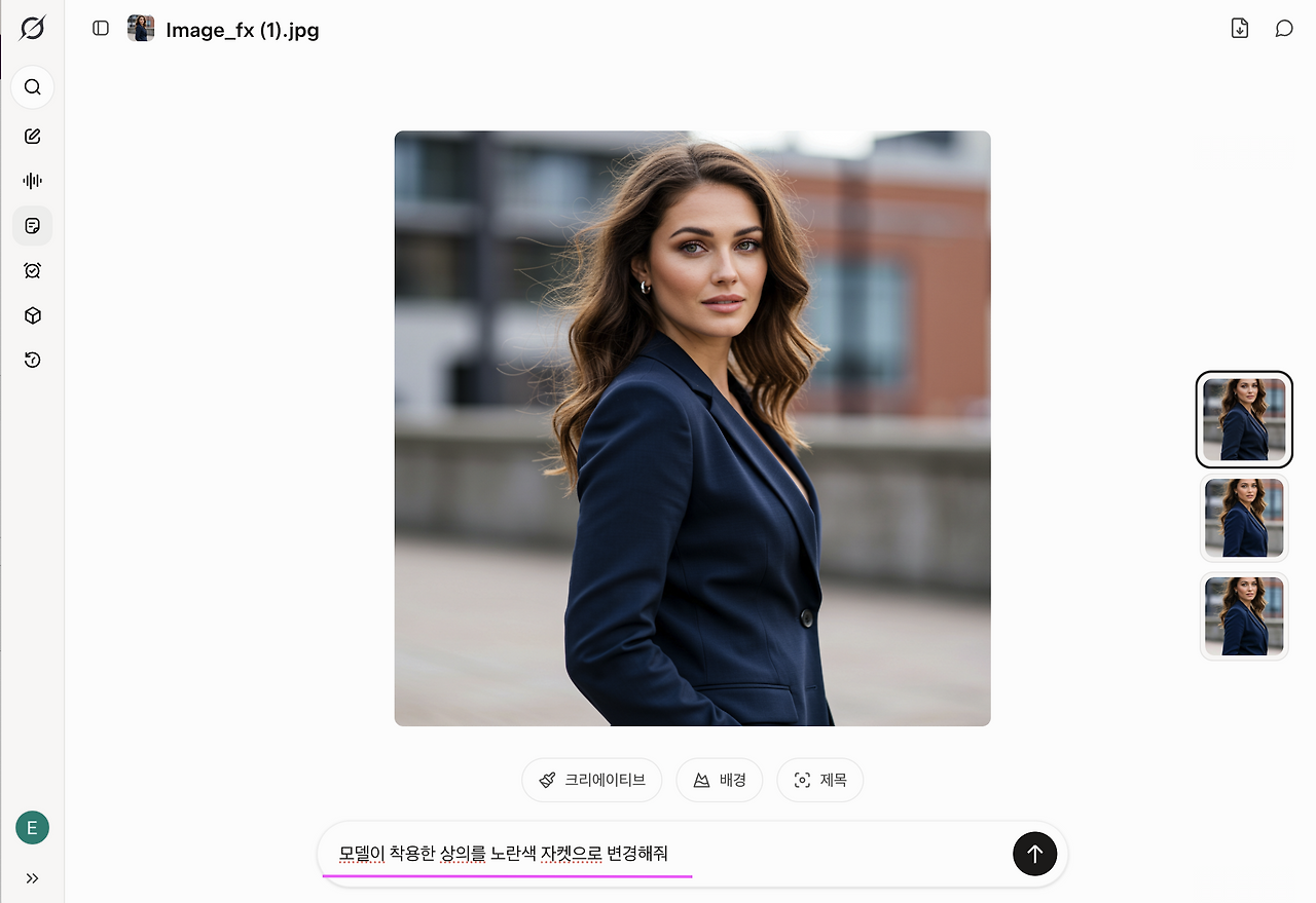 또한 "크리에이티브", "배경", "제목" 등 기능을 통해서 이미지를 편집할 수 있습니다.