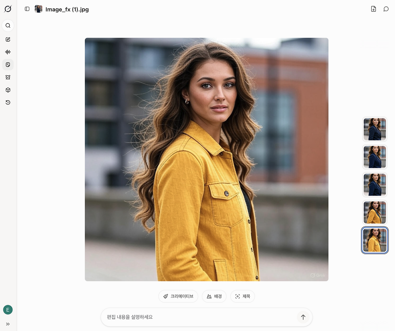 외국인 모델 이미지를 업로드하고 "모델이 착용한 상의를 노란색 자켓으로 변경해줘"라고 요청해보겠습니다.