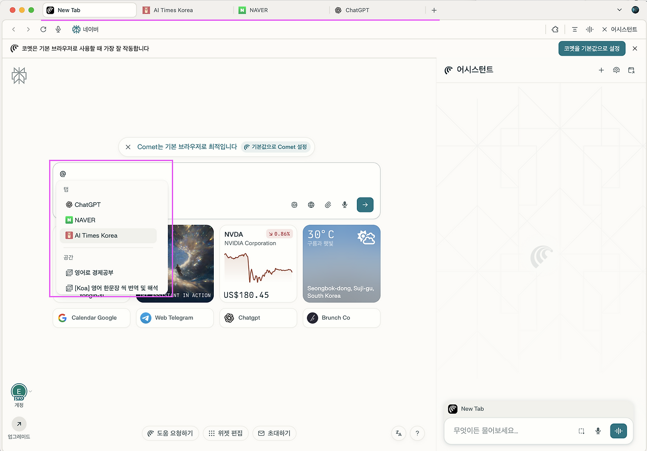 이처럼 코멧은 단순한 브라우저가 아니라, 검색·정리·실행·관리까지 하나로 묶어주는 ‘올인원 작업 공간’에 가깝습니다. 각 기능이 따로 노는 것이 아니라, 실제 사용자의 흐름에 맞게 이어진다는 점에서 기존 브라우저와 확실히 차별화됩니다.