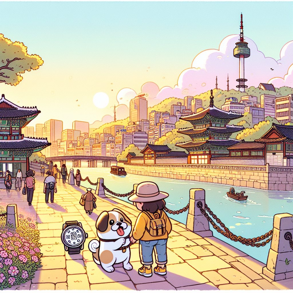 콩콩이는 자신만만한 표정으로 작은 시계를 꺼내 보였다. "이 특별한 시계를 사용하면 시간이동이 가능해! 자, 이제 탐험을 떠나보자고!" 당신은 콩콩이가 내민 시계를 받아들고, 무언가 신비한 기운이 느껴지는 그 시계에 눈길을 주었다. "어디로 가는 건데?" 콩콩이는 밝게 웃으며 대답했다. "2024년 서울을 벗어나 다른 시대를 구경해보자고! 일단 첫번째 목적지는 조선시대!"