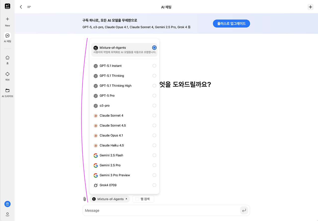 Mixture of Agents(MOA)란 여러 개의 AI 모델(GPT, Claude, Gemini 등)의 답변을 한 번에 받아서 각 모델의 장점만을 합쳐 최적의 결과를 만드는 기술입니다. 예를 들어 한 질문에 대해 여러 모델이 각자의 관점으로 답을 내면, MOA는 모든 모델의 답변을 비교·분석해 정확도, 신뢰성, 창의성 등 강점만을 취합해 최종 답을 제공합니다.