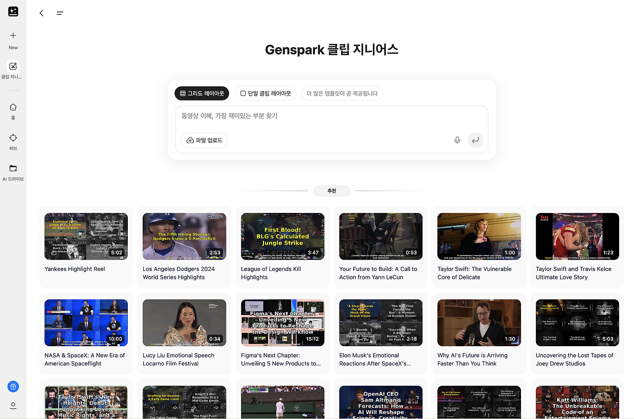 동영상 중 원하는 핵심 부분만 AI가 자동으로 추출·편집해 짧은 클립으로 만들어주는 메뉴입니다. 예를 들어, 1시간짜리 투자 강연에서 주요 전략만 뽑아 5분 요약 클립으로 편집하거나, 회의 녹화 영상에서 결정 사항만 정리할 수 있습니다.