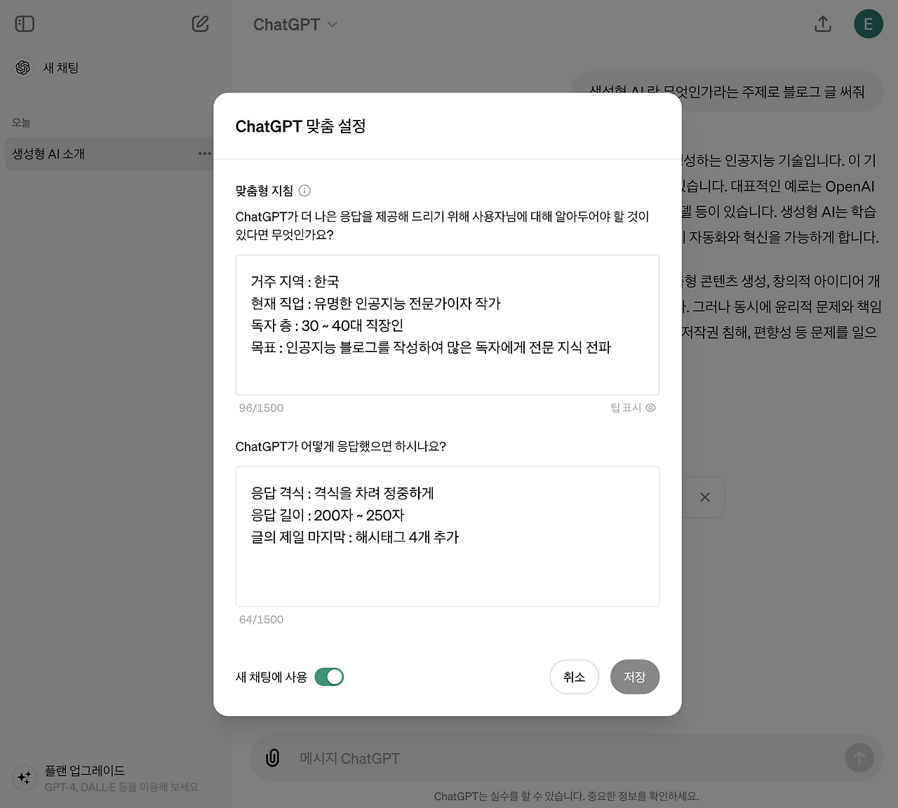 ChatGPT가 어떻게 응답했으면 하시나요? (작성 팁)