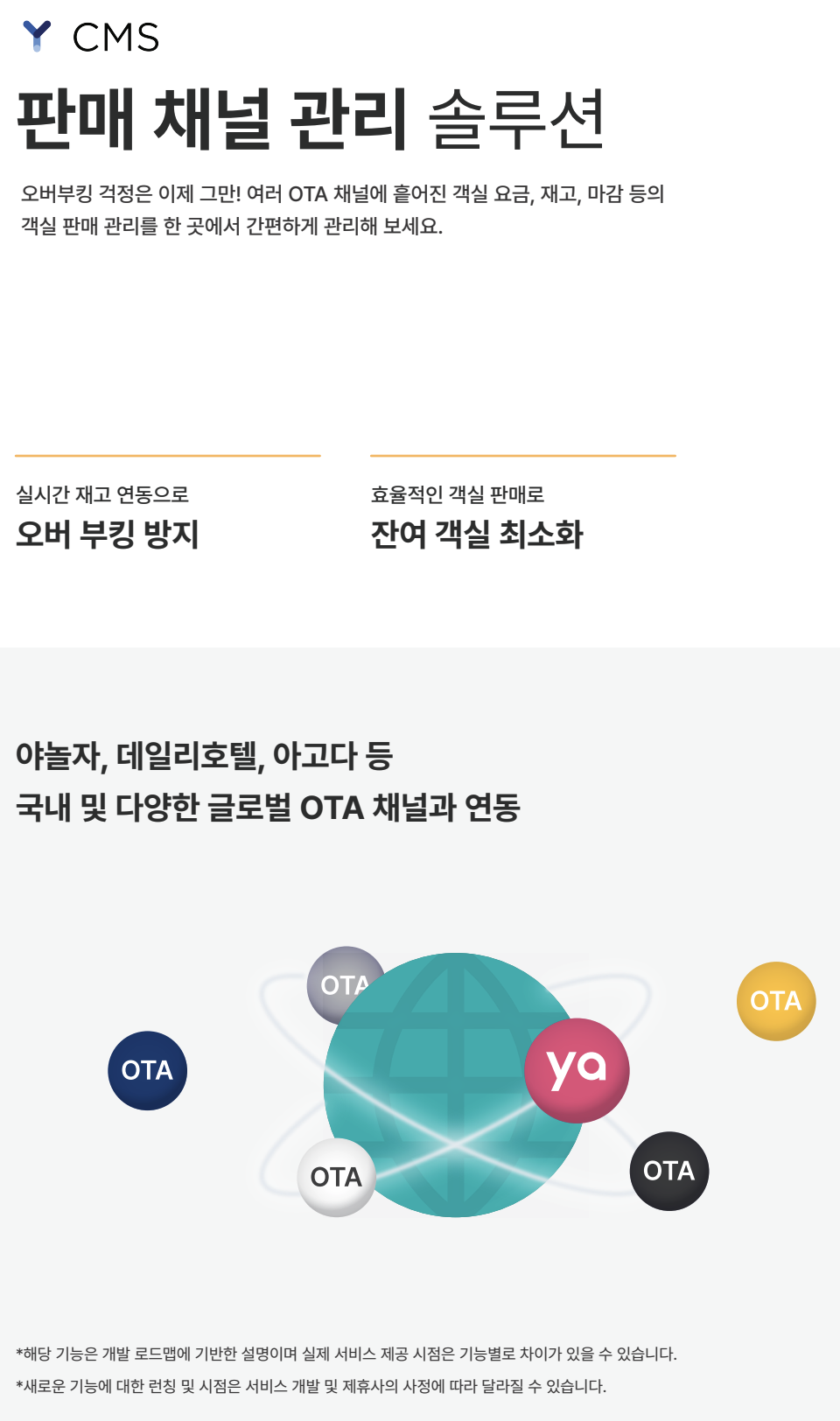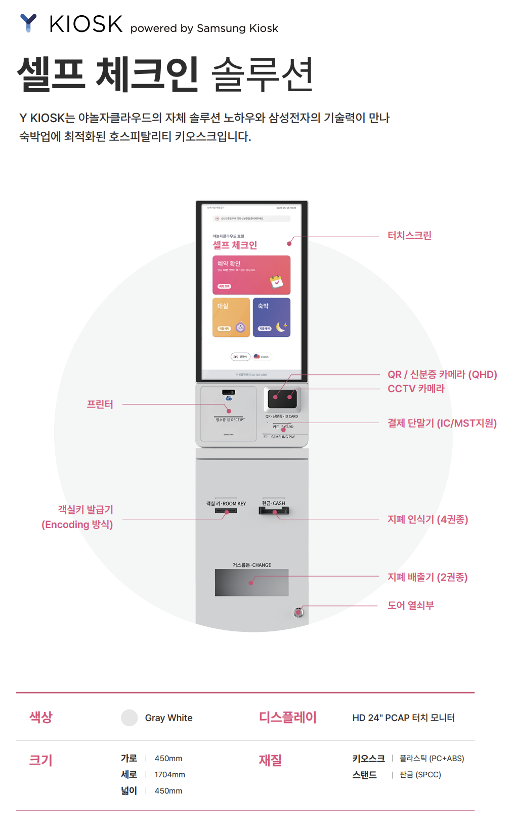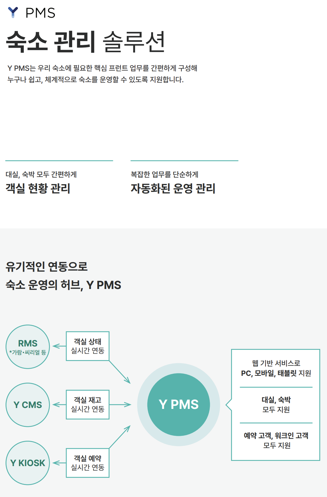 인공지능과 클라우드 기술을 결합한 SaaS(Software as a Service) 솔루션을 통해 호텔, 리조트 등 숙박 시설의 운영 효율성을 극대화하고 있습니다. 주요 제품으로는 셀프 체크인 솔루션 Y KIOSK, 숙소 관리 솔루션 Y PMS, 판매 채널관리 솔루션 Y CMS 가 있습니다.