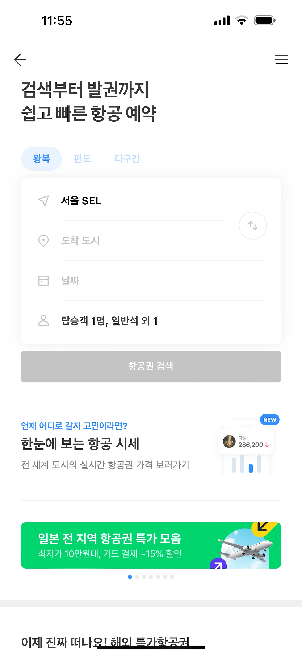 모바일 기반 여행 플랫폼으로, 인기 여행 도시별 여행 정보를 제공하며 항공, 숙소, 투어/티켓 상품 등을 판매합니다. 또한 보험, 유심, 와이파이도시락, 렌터카 등 여행 준비물에 대한 정보도 제공합니다.