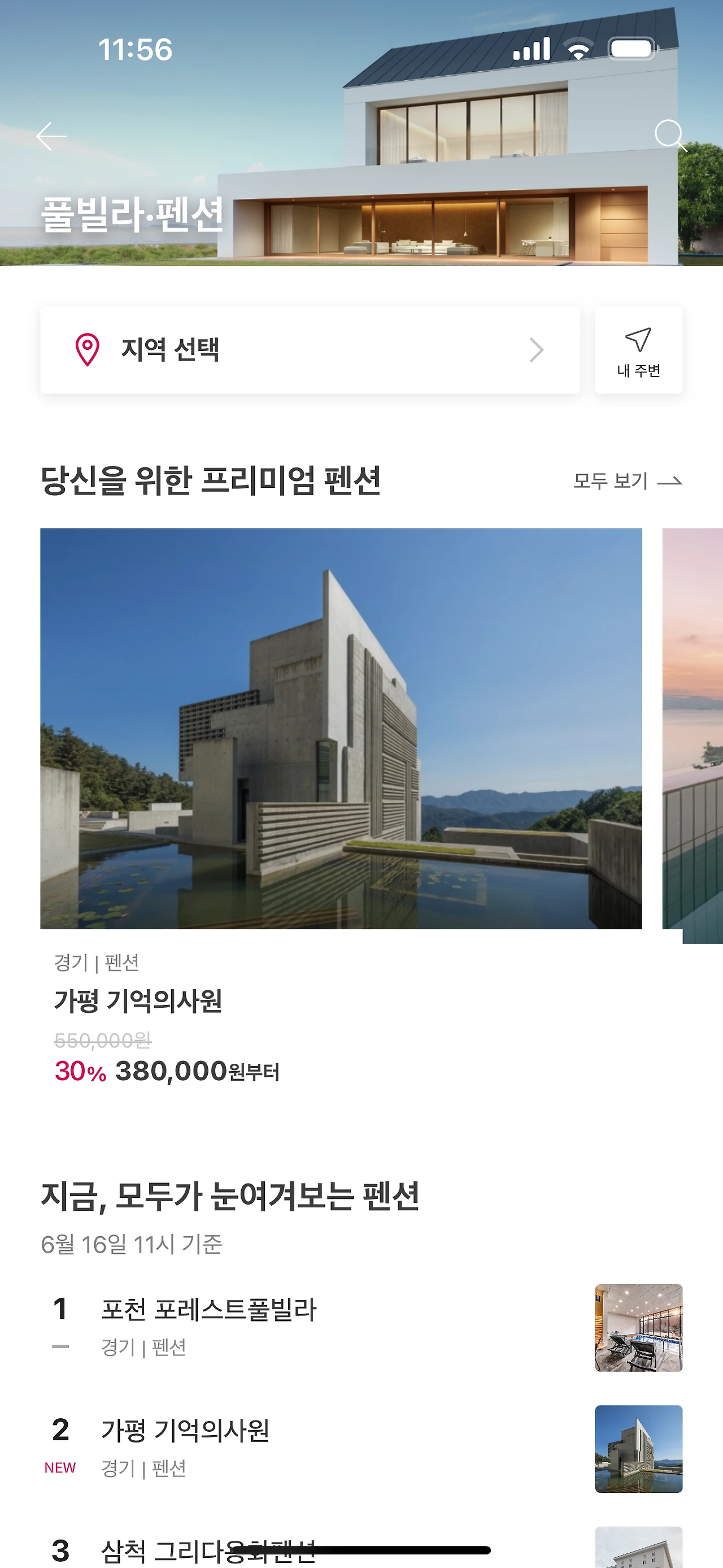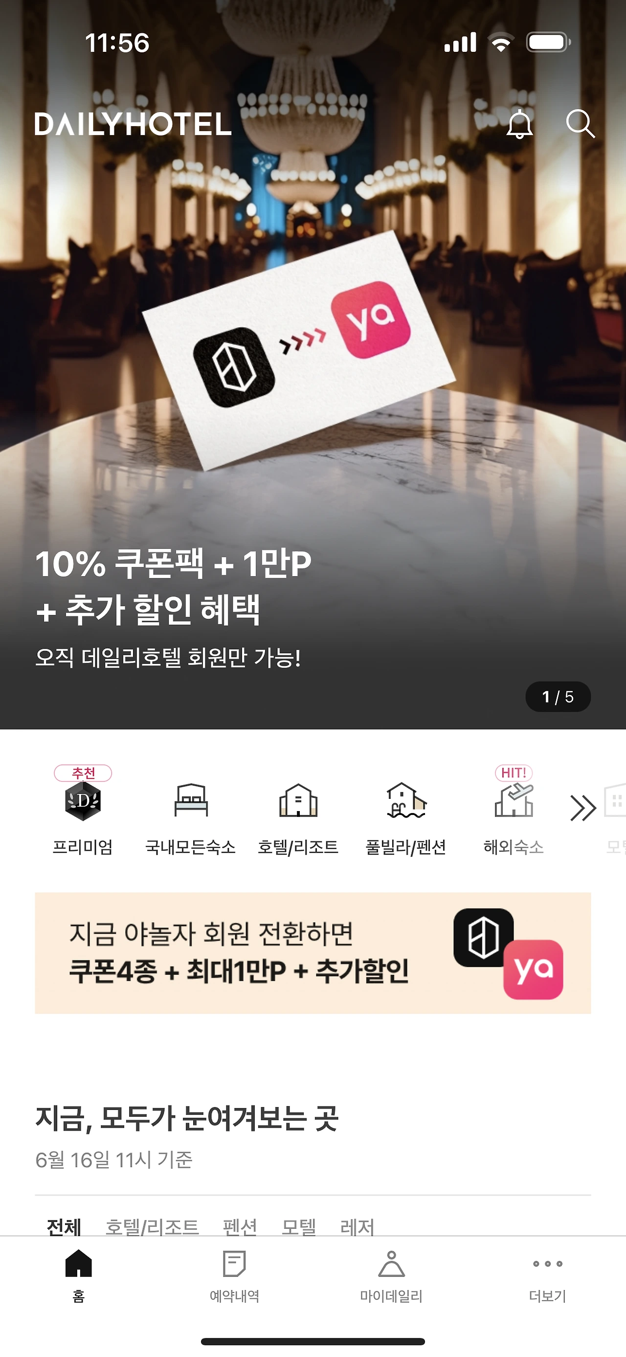 국내외 호텔, 펜션, 리조트, 모텔, 캠핑 등 다양한 숙소의 특가 예약 서비스를 제공하는 앱입니다. 또한 스파, 키즈 등 다양한 레저 상품의 특가 예약 서비스도 함께 제공합니다.