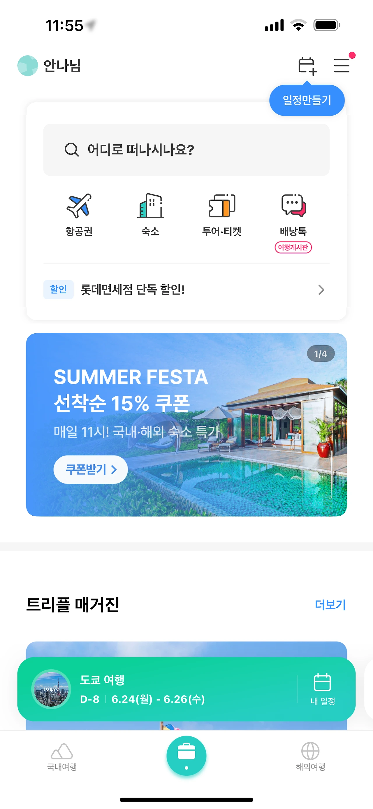 야놀자ㆍ인터파크ㆍ트리플ㆍ데일리호텔 등 시장을 이끄는 여행 슈퍼앱 포트폴리오를 통해 숙박ㆍ레저ㆍ교통 등 여행을 위한 모든 서비스를 제공하고 있습니다.
