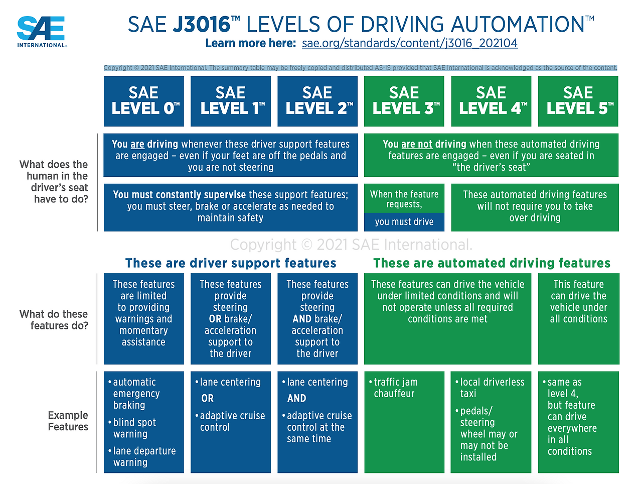 이 단계에서는 운전자가 모든 주행 기능을 직접 수행합니다. 차량에는 자동화된 시스템이 없으며, 운전자가 조향, 가속, 제동 등 모든 운전 작업을 담당합니다. 다만, 경고 시스템(예: 차선 이탈 경고)은 포함될 수 있습니다.