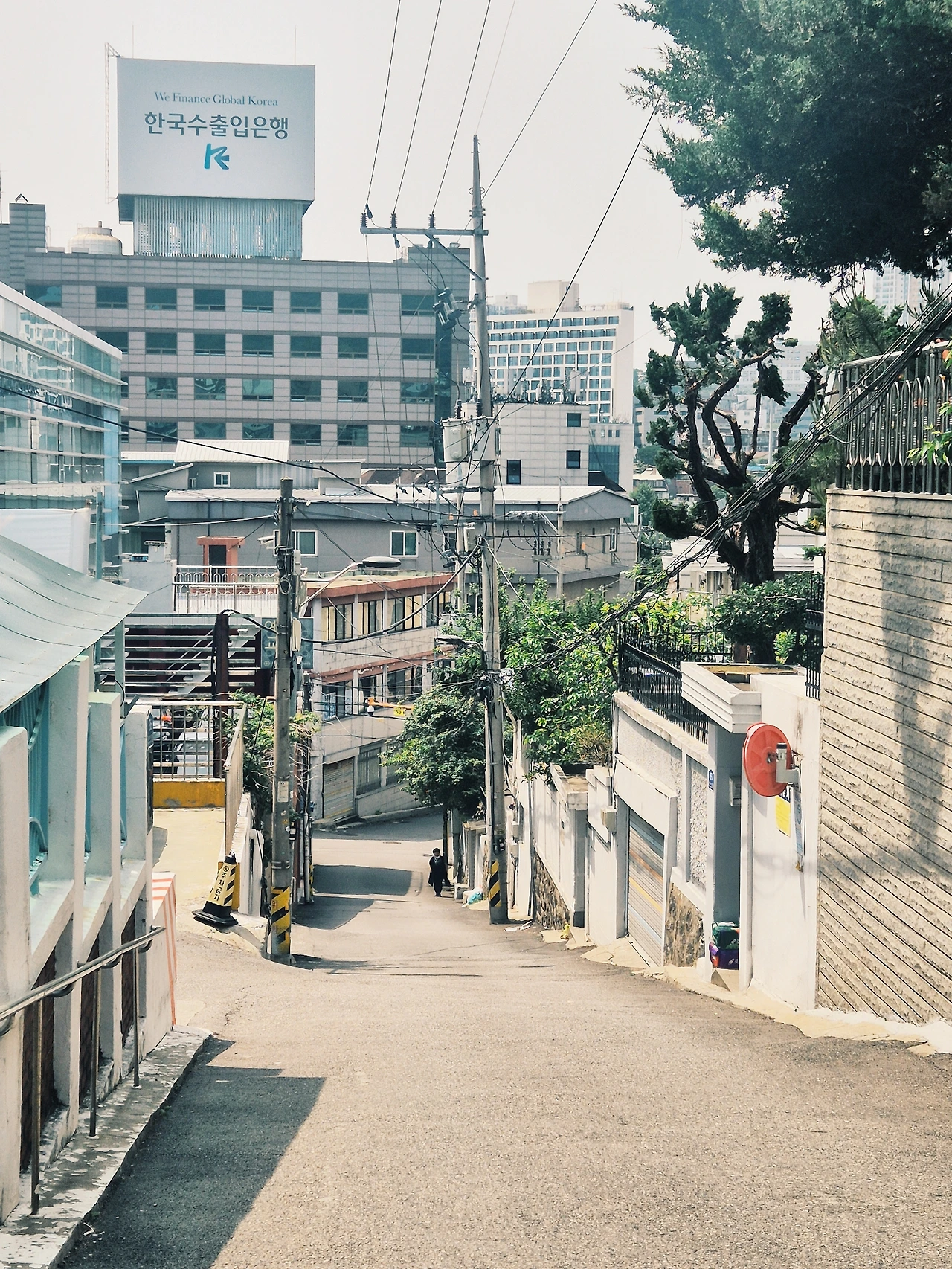 큰길에서 몇 걸음만 비켜서면, 도심의 소음은 어느새 저 멀리 밀려나고, 담벼락을 따라 걷는 제 발자국 소리만 또렷이 들려온다. 담장 낮은 집들, 뒤엉킨 전선들... 잠시 숨을 고르는 듯한 풍경이 펼쳐졌다. 멀리 보이는 거대한 빌딩들은 여전히 차갑고 기능적인 얼굴을 하고 있었지만, 뒷골목에는 여전히 사람 사는 온기를 품고 있었다.
