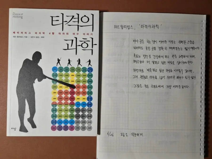 아래 구절은 메이저리그 전설의 4할 타자, 테드 윌리엄스의 자서전 '타격의 과학'에 있는 내용이다.