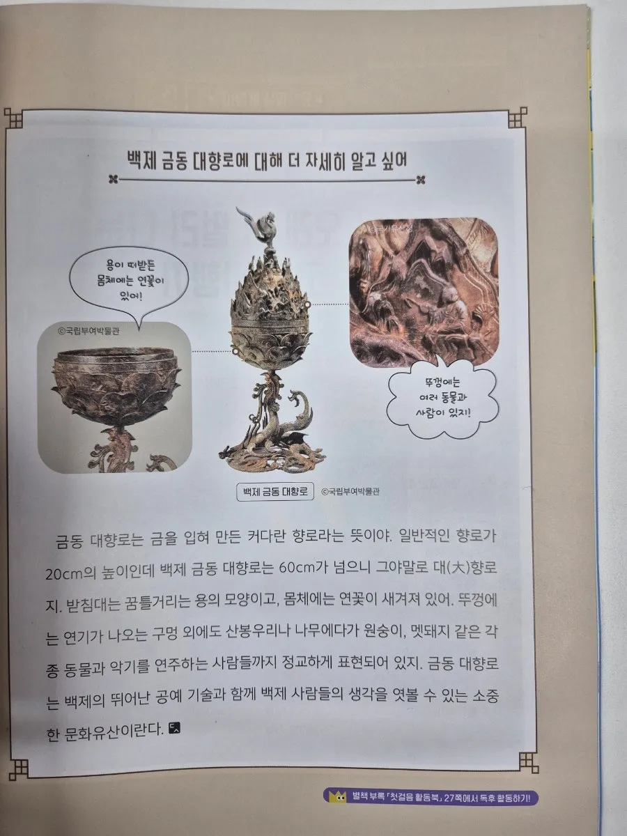 1월 경, 아이와 함께 찾은 부여 국립박물관에서 백제 금동대향로를 만나보았다. 마침 아이가 읽는 독서평설에서도 다루고 있어 타이밍이 좋았다.