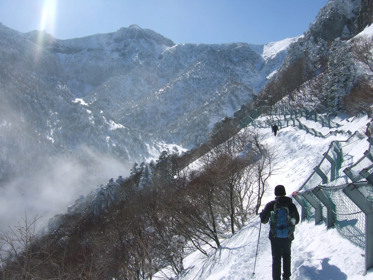 예상했던 대로 눈이 너무 많이 내린 까닭에 길과 계단이 제대로 보이지 않았다. 빙판길을 더듬더듬 걸어가며 비스듬히 서 있는 나무를 부여잡으며 아슬아슬한 비탈길을 올라갔다. 산에 많이 다녔다고 자신만만했던 나도 힘들었다.