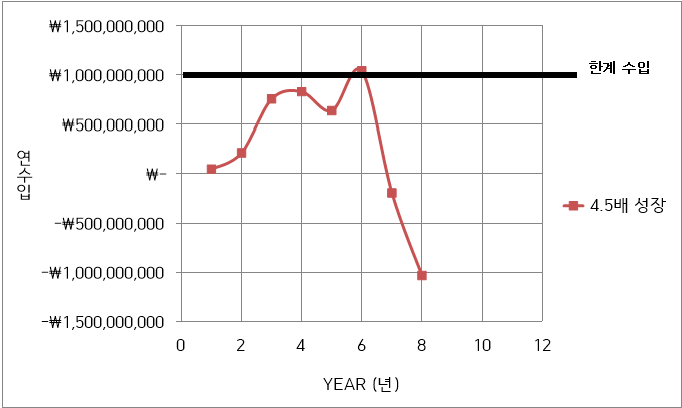 Case 3) 한계 연간 수입이 10억 원일 경우, 성장률 4.5배일 경우
