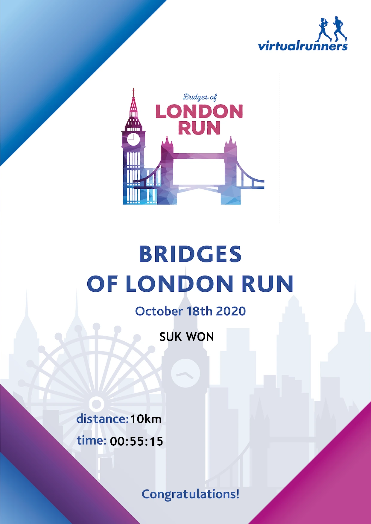 런던 대회(?), 기록은 좋지 않지만 새로운 대회에서 또 하나의 10k를 마쳤다는 뿌듯함을 남겼다.