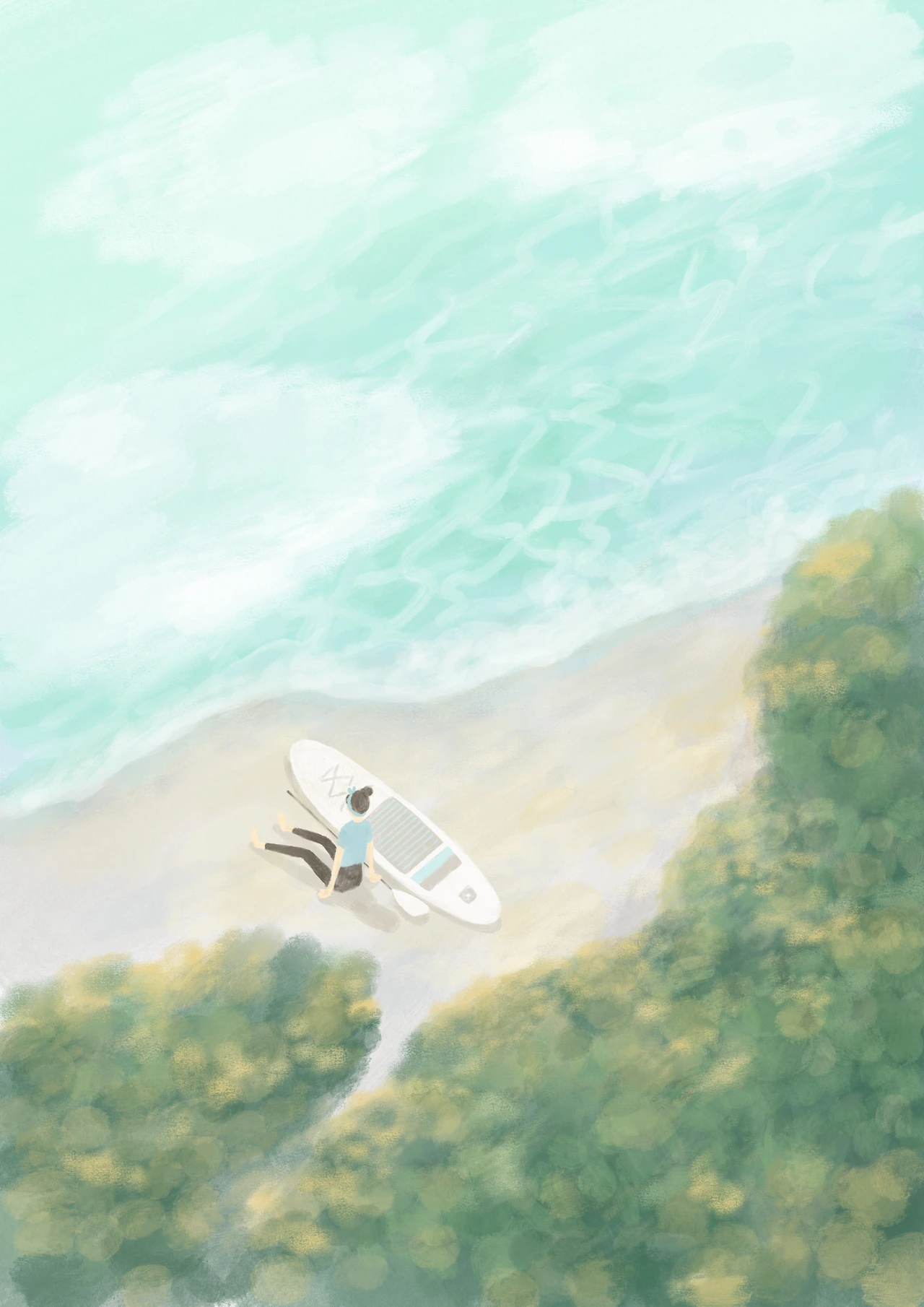 너어~무 부끄러워서 나는 죽을힘을 다해 패들링을 했어. 다시 만날 어색함을 생각하니 불끈 힘이 다시 솟아났어.