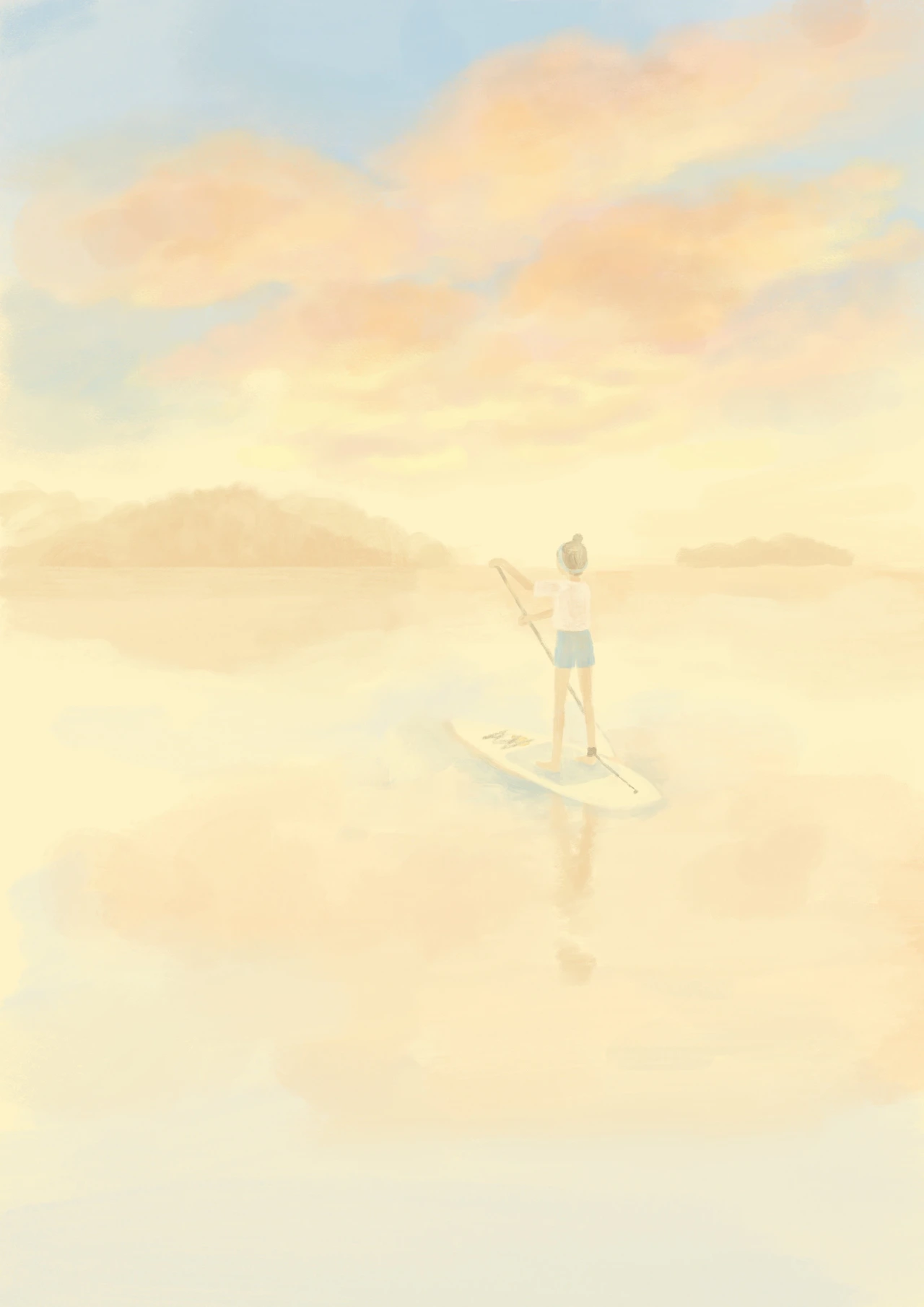 그래야 허리가 펴지고 몸이 패들보드의 중심부에서 직각으로 서게 되니까 안정적인 각도가 만들어지지. 그런데 이게 결코 쉽지는 않아. 흔들흔들 물에 빠질 것 같아 겁이 나는데 정면을 바라본다는 게 쉬운 일은 아니거든. 그래도 계속하다 보면 갑자기 되는 순간이 오고, 한번 성공하면 두 번은 쉬운 일이야.