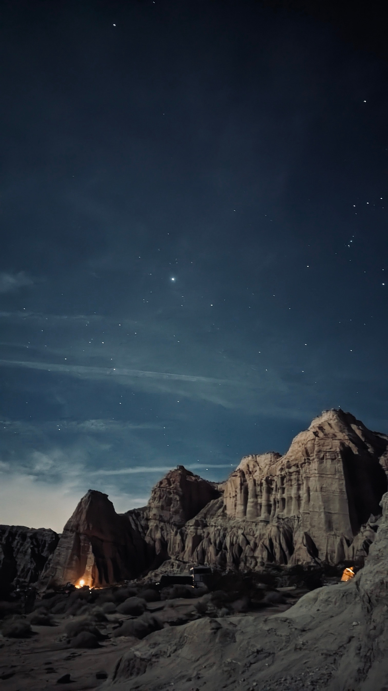 이른 저녁 먹고 텐트에 짐 풀고 나왔더니 세상에... 덩그러니 지평선 위로 쑥 올라와 있는데 너무 크고 광명해서 순간 일출인가 싶었어요. 빛공해 하나 없는 시커먼 지평선에 떠 있는 달 보신 적 있나요? 아름다움이 극에 달하면 조금 무섭다는 걸 알게 되었어요.