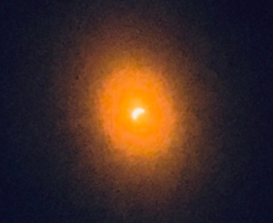 완전히 포개지자 경건해진 순간입니다. 태양 코로나 주변에 양 옆으로 위치한 화성(우측)과 목성(좌측)도 볼 수 있습니다.