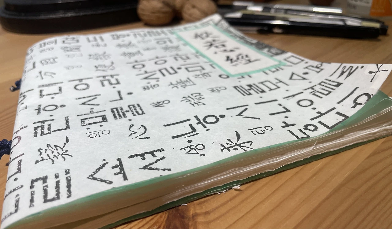 한번 더 접고는 나란히 구멍 두 개 뚫어 공책을 만들었지. 제목은 좀 더 두꺼운 이합장지에 써서 오려 붙이고, 표지는 '나랏말싸미듕귁에달아' 종이가 있길래 뭔가 표지스러워가지고 그걸로 하고. 더 꾸몄다간 다꾸 하는 어린이가 될 것 같아 그쯤에서 그만두었어. 요즘 내 트렌드는 백비(白賁: 꾸밈이 본질을 압도하지 않음. <주역 상경> 중)거든. 나는 유행에 민감해. 내 안에 지금 어떤 바람이 부는지, 뭐가 패권을 잡았는지 그런 거 있잖아. 그런 거 보고 있으면 재밌어.