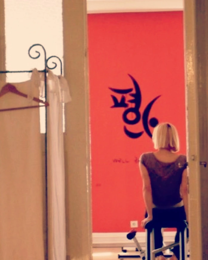 첫 획을 벽에 긋는 순간 붓에 적절량 이상의