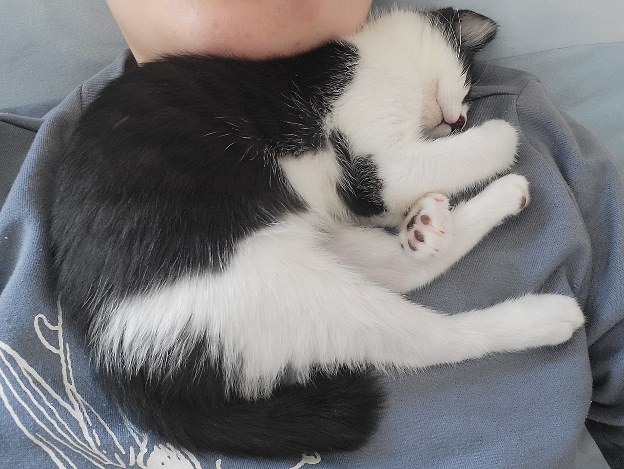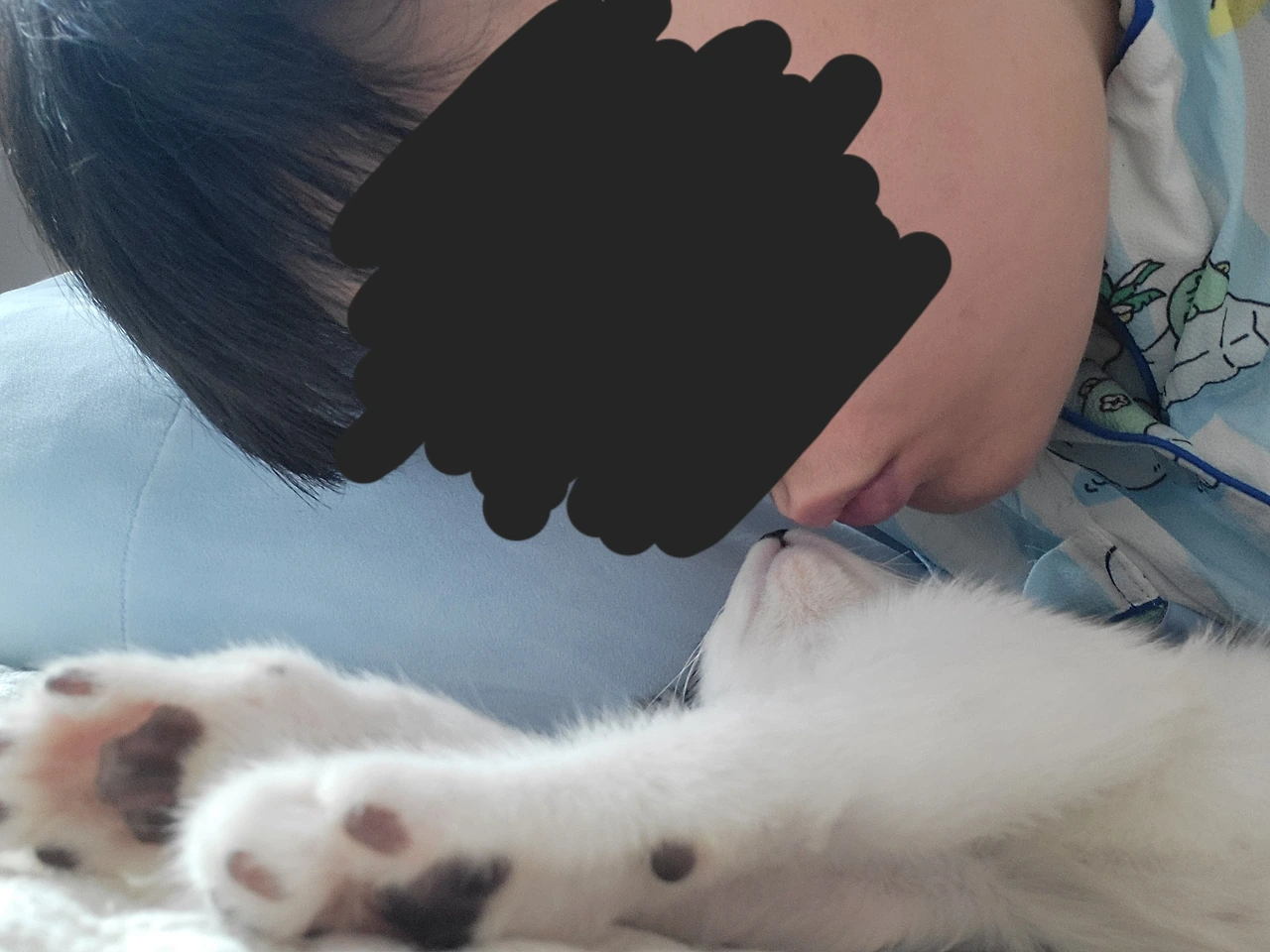 덕분에 집사는 낮잠 내내 목이 졸리는 꿈을 꿨지만 행복한 시간이었다.