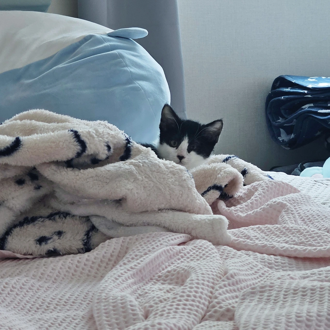 두 눈을 가리고 잔다.