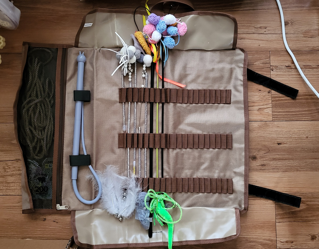 밸크로가 붙기 때문에 장난감을 위에 붙여 줄 수도 있고, 헤어롤을 이용해 안에 간식을 넣어서 붙여 줄 수도 있다(이 꿀팁을 전해 준 선배 집사에게 감사를 표한다.).