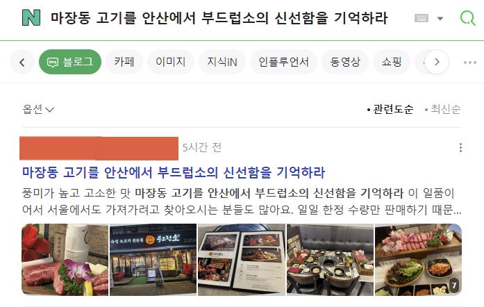"블덱스" 사이트로 해당 블로그가 준최 블로그인지? 최적화 블로그인지? 체크를 해보셨다면, 해당 블로그가 저품질인지?도 체크해 볼 수 있습니다. 해당 블로그의 링크를 타고 들어가서 가장 최근에 발행된 글의 제목을 복사해서 네이버 검색 창에 입력해서 검색을 해보는 것입니다. 만약에 글의 제목 전체를 복사해서 붙혀넣었는데 첫 번째 게시글로 노출이 되지 않는다 하면 해당 블로그는 저품질 블로그로 아무리 글을 작성하더라도 노출이 될 가능성이 없습니다.