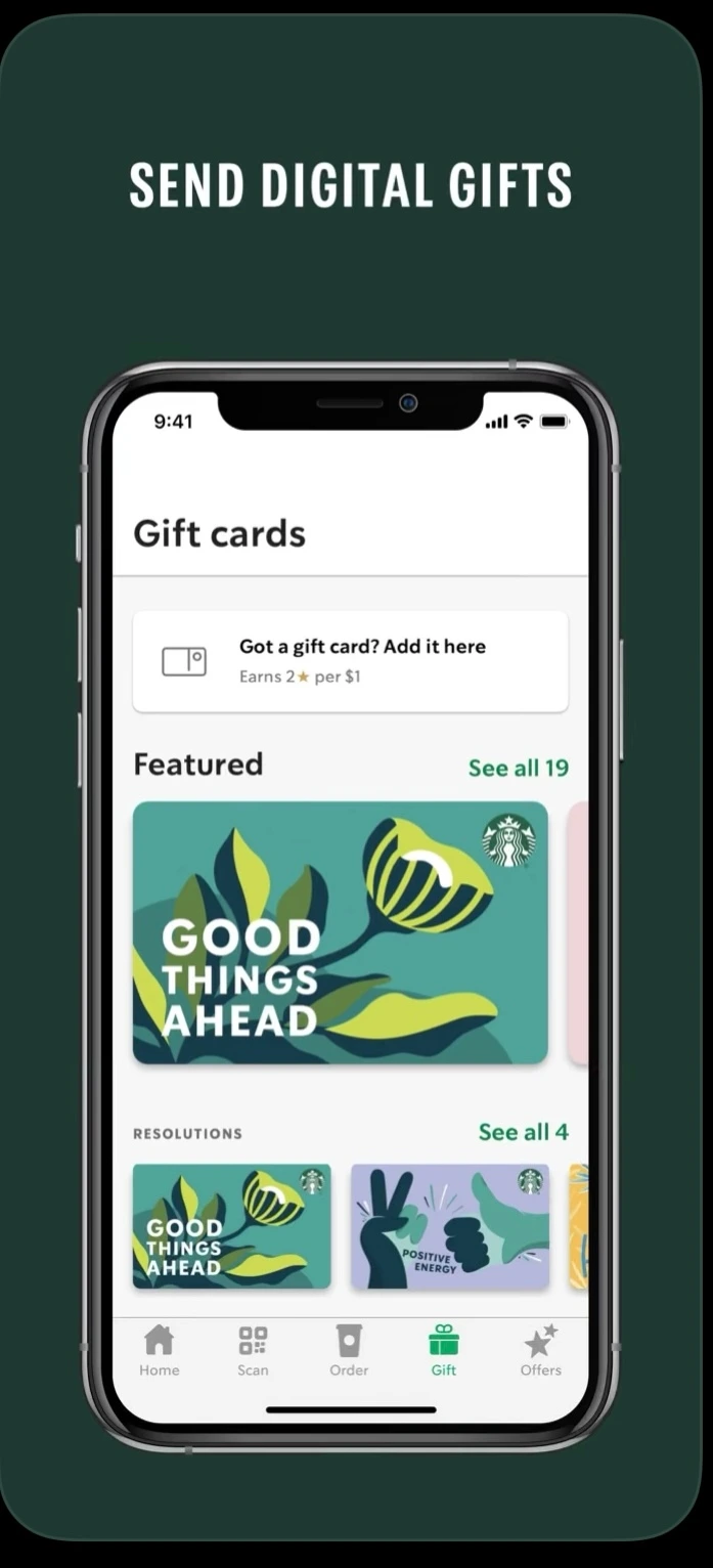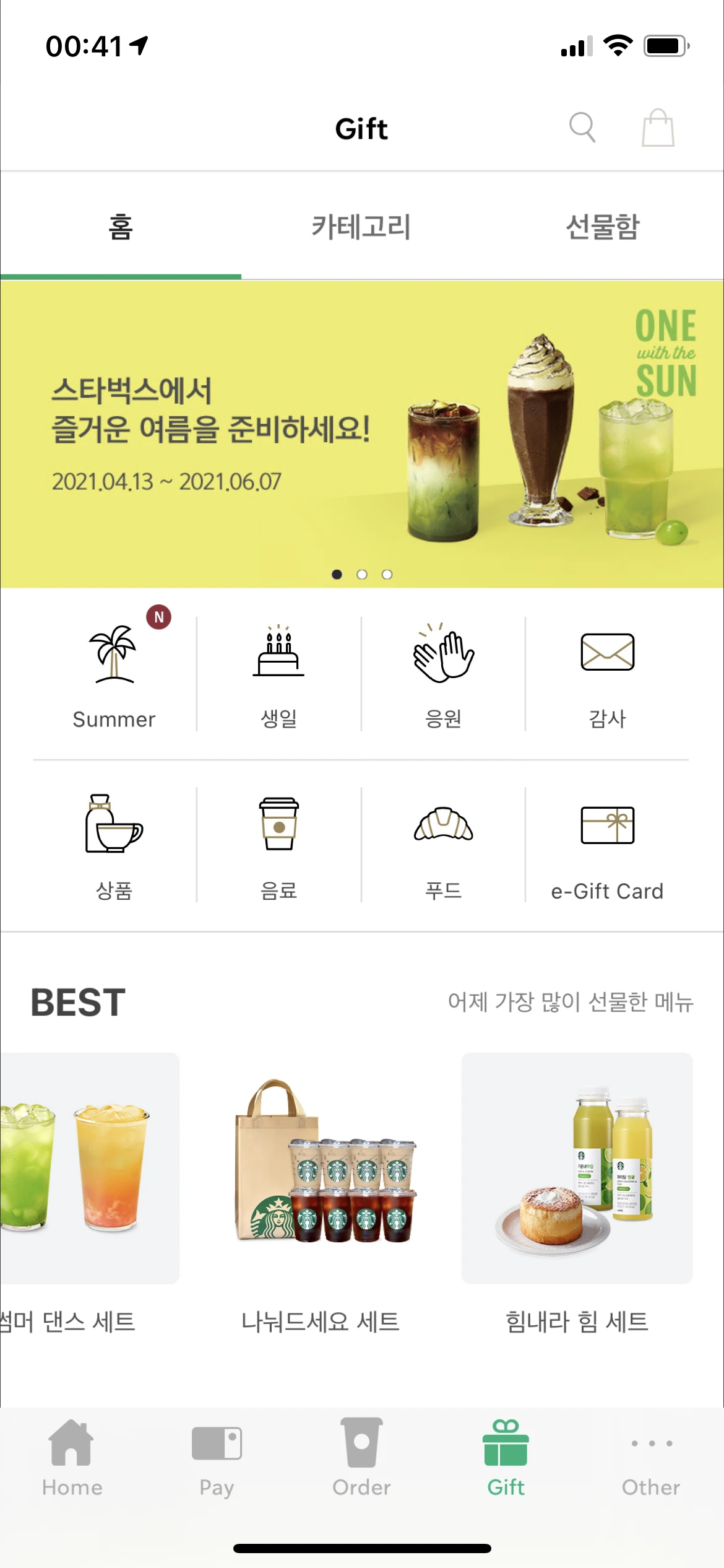확실히 사이렌 오더 시스템을 매우 잘 활용하고 있는 한국답게, 기프트 탭도 카카오톡 선물하기 같은 디자인으로 형성되어 있습니다. 굳이 카카오톡 기프티콘으로 선물할 필요 없다는 듯한 포부가 느껴지네요.
