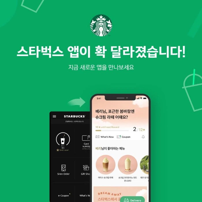 스타벅스 코리아의 앱이 리뉴얼 된지 사실 좀 오래됐습니다. 하지만 리뉴얼 이후 사용자로서 스타벅스 앱을 쓰면서 느꼈던 지점들을 리뷰해보려고 해요. 이번 글을 준비하면서 미국의 스타벅스 앱도 대략적으로 살펴보았는데, 미국 앱이든 한국 앱이든 보이스 앤 톤이 일관되게 유지되고 있었습니다. 역시 초거대기업 수다벅수... 리뷰 시작하겠습니다.