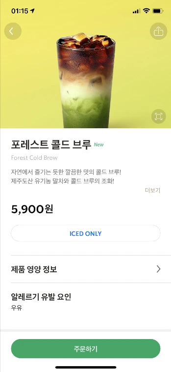 예전에는 새로 나온 음료에 어떤 재료들이 들어가있는지 보려면 한 단계를 더 거쳐 작은 글자들을 읽어야 했는데, 지금은 음료의 사진부터 설명까지 아주 시원시원하게 보여지도록 UI를 개편했습니다. 개인화가 더 진행이 되어, 넷플릭스처럼 제가 새로 나온 음료를 얼마나 좋아할지 퍼센테이지로 보여줄 날이 오면 좋겠습니다!