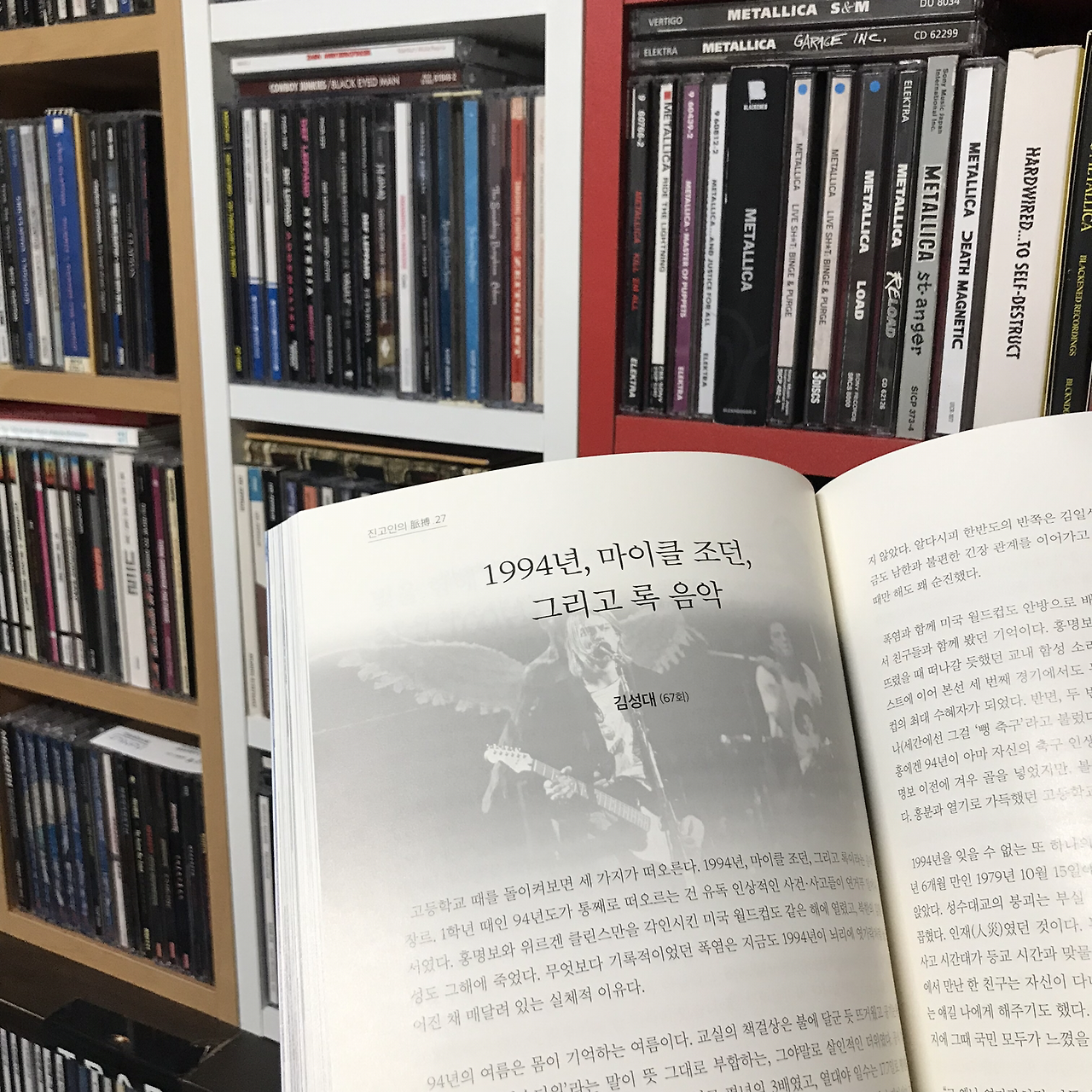 십대 때 내 마지막 키워드는 록 음악이다. 나는 고등학교 때부터 록과 헤비메탈을 들었다. 그 전엔 가요와 팝 위주로 들었었다. 음악 취향이 바뀐 계기는 같은 반이었던 록 마니아 친구가 우연히 앨범 두 장을 추천해주면서였다. 바로 메탈리카의 5집 <Metallica>와 너바나의 2집 <Nevermind>였다(앞선 1994년은 너바나의 리더 커트 코베인이 스스로 삶을 마감한 해이기도 했다). 시원하고 헤비한 두 앨범을 듣고 나는 완전히 다른 음악 세계로 첫 발을 내디뎠다. 음악도 장르마다 들을 시기가 따로 있는 건지, 이전 같았으면 시끄럽고 과격하다고 거부했을 메탈리카와 너바나는 서태지의 ‘교실이데아’ 때 느낀 해방감과 자신감을 다른 차원에서 나에게 건네주었다. 나는 그 앨범들을 들은 뒤 이전의 나로 돌아갈 수 없었다. 록 음악은 그렇게 운명처럼 내게 와 나의 운명이 되었다.
