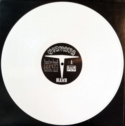 89년 6월 15일. 마침내 너바나의 데뷔 앨범 《Bleach》가 흰색 바이닐 천 장 한정으로 나온다. 이후 《Bleach》는 여러 색깔 바이닐로 발매되는데, 이유는 청구서가 많아지면 공급업체를 바꾸는 것으로 악명 높은 서브 팝의 거래 방식 때문이었다. 가령 호주 워터프런트Waterfront Records에선 파란색 또는 노란색 《Bleach》 바이닐이 유통됐고표지도 파랑, 노랑 잉크로 꾸몄다 89년 8월 12일, 영국 투펠로Tupelo Recording Company는 <Love Buzz>를 <Big Cheese>로 대체한 《Bleach》 영국 초판을 처음엔 흰색 3백 장, 두 번째는 녹색 2천 장으로 유통시켰다. 서브 팝은 같은 달 첫 번째 《Bleach》 카세트테이프와 CD를 발매했는데, 테이프 마지막엔 <Big Cheese>를, CD 끝엔 <Downer>를 배치했다.