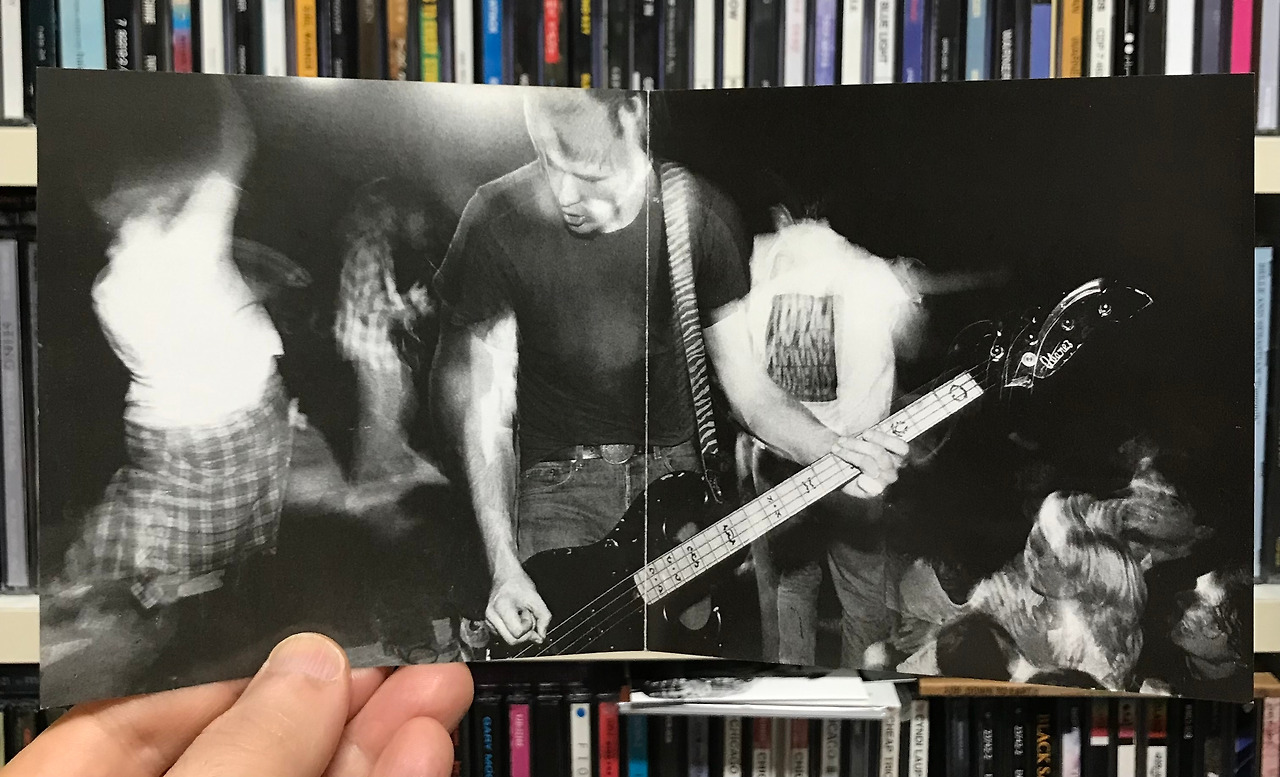 찰스 피터슨이 찍은 《Bleach》 속지 사진. 크리스가 베이스 연주에 빠져 있다.