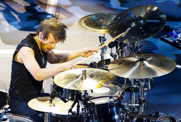 그런 단순한 화려함으로 도미닉은 뮤즈 음악을 지탱한다. 예컨대 매튜 벨라미가 기타를 거꾸로 메고 관중을 향해 걸어가며 ‘Dead Inside’를 부를 때 크리스 볼첸홈과 그 멍석을 깔아주는 것이 바로 도미닉의 땡글땡글한 비트라는 얘기다. 또한 크리스의 최고 베이스 리프가 숨 쉬는 ‘Hysteria’를 천천히 정상으로 이끄는 느린 하이햇 오픈클로즈도 마찬가지로 뮤즈에는 도미닉 하워드여야 함을 증명하는 플레이다. 그리고 플로어 탐. 뮤즈라는 밴드가 늘 염세적이고 우주적인 분위기를 추구하는 팀이다 보니 도미닉 역시 자신의 드럼 킷에 플로어 탐만 3개를 두고 있는데, 장 담그듯 양팔로 힘 있게 꽂아넣는 리듬의 그 깊은 맛은 심지어 가장 날카로워야 할 스네어 드럼 톤에까지 최근엔 전염되고 있는 추세다. 그렇게 질퍽한 플로어 탐 드러밍으로 묻어둔 벌스(verse)는 쨍쨍한 질지안 에이 커스텀 EFX(Zildjian A Custom EFX) 심벌에 부서지는 코러스를 타고 비로소 해방되니, 그야말로 서사를 책임지는 멜로디와 가사는 매튜의 몫이지만 그 서사를 물들일 뮤즈의 시간은 도미닉의 몫이라 해야겠다.