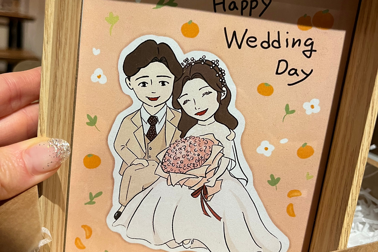그런데 아끼는 후배로부터 값도, 가치도 매길 수 없는 선물을 받은 적이 있다. 바로 우리 결혼사진을 캐리커처로 그린 액자였다. 결혼 전 미리 주고 싶었는데 부끄러워서 이제야 준다며 건넨 쇼핑백에는 후배가 그린 우리 모습이 담겨있었다.