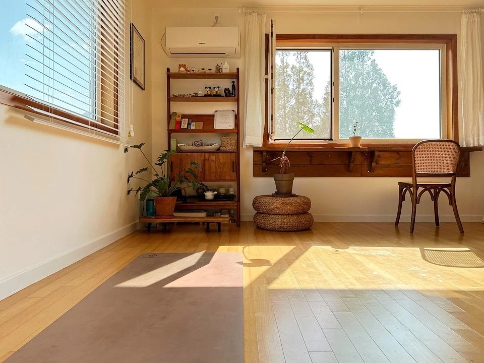 방에 들어설 때는 심호흡 한번. 아무도 방해하지 않는 혼자만의 고요를 위한 성소가 되어, 요가도 하고 책도 읽고 글도 쓰며 마음을 풀어낼 수 있을 거 같다.
