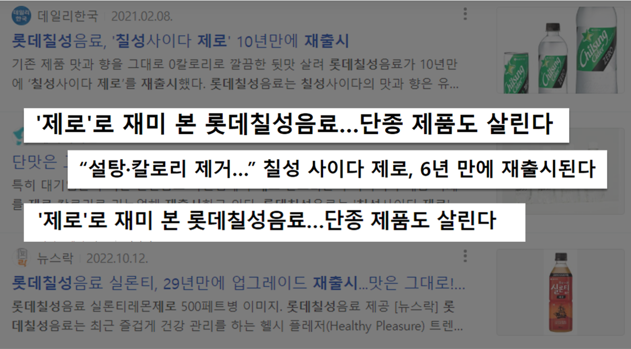그런데 신기한 건, 이 제로 기술은 최근의 것이 아니라는 거다. 일례로 칠성사이다 제로는 이미 2011년 출시된 바 있었다. 매출 부진으로 2015년 단종되었는데 제로칼로리에 대한 선호도가 높아지며 6년 만에 재출시됐다.