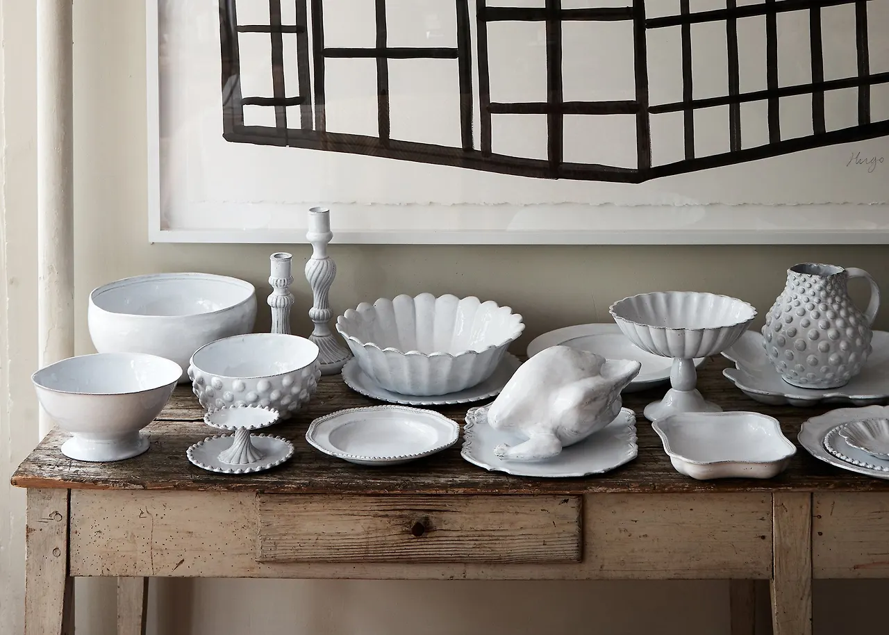 흙빛의 테르누아 위에 우윳빛 에마유를 입혀 살짝살짝 흙빛이 비치는 시그너처 스타일은 마치 18세기 프랑스 어느 시골집에서 사용했을 것 같은 빈티지함과 고급스러움, 섬세한 디테일의 매력을 모두 담았다.