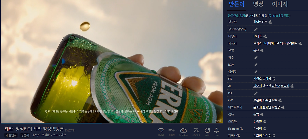 그렇기에 캠페인을 마무리하고 남는 내 이름 하나에 내 성취와 기쁨이 담겨있다. 광고 소재가 라이브되면 ‘TVCF’라는 광고 사이트에 ‘만든이’ 정보가 업데이트된다. 제작자, 감독, AE, 카피라이터, 아트디렉터... 칸 옆에 적힌 전우들의 이름.
