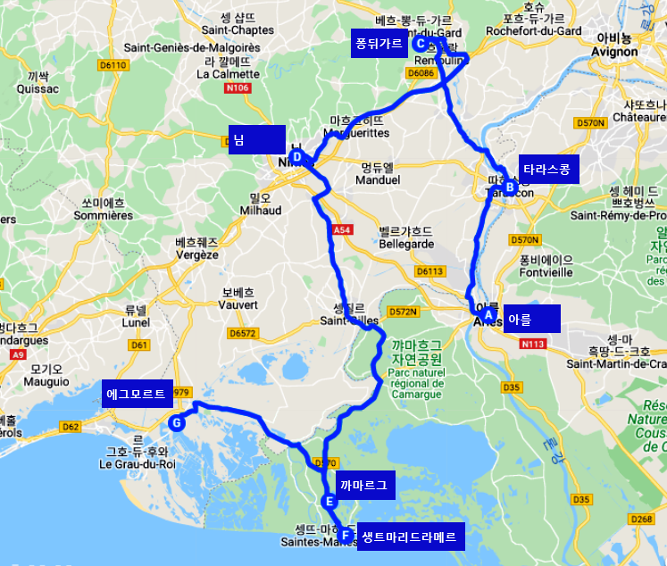 님에서 1박 하고 까마르그 부근에서 1박을 계획하면 되겠다.