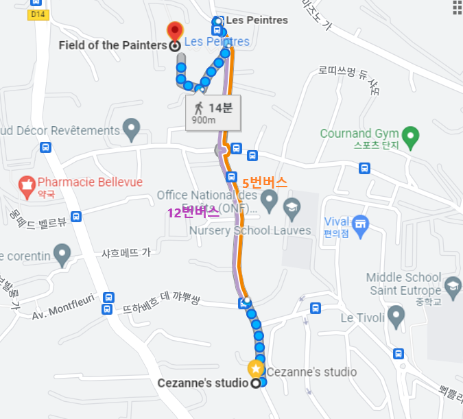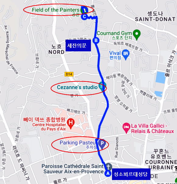 차를 파스퇴르 주차장에 주차해두고 세잔스튜디오 보고 거기서 화가들의 들판은 버스로 다녀와도 된다.