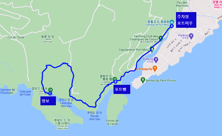 ① Parking Savon/ 관광안내소 부근 주차장이지만 자리 차지하기 어렵고 2시간 한정이다. ② Parking Cassis Bestouan – EFFIA / 좌표 43.216202, 5.541253 주소 Avenue de l'Amiral Ganteaume, 13260 Cassis /24시간 영업/요금 3시간 3.7유로/ 하루 10.90유로 ③도로 주차장 좌표 43.214362 5.534760
