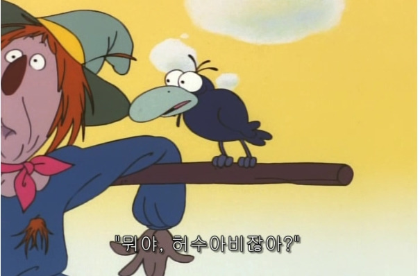 “그 농부가 이런 어쭙잖은 방법으로 날 가지고 놀려고 했다니 놀라운데. 생각이 있는 까마귀라면 누구라도 네가 짚으로 만든 사람이라는 것을 알 거야 “