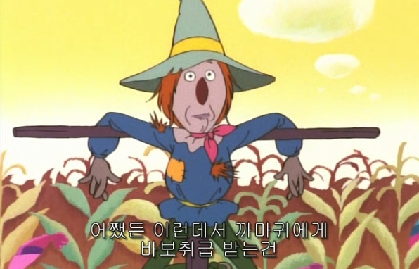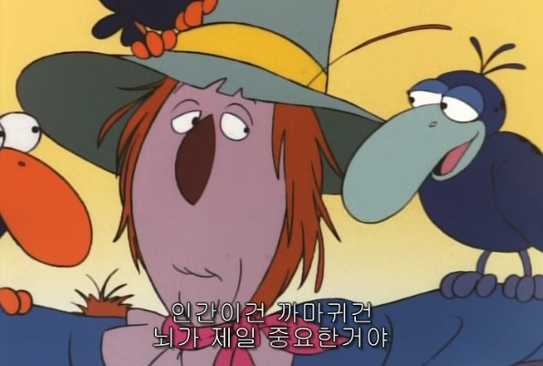 ”네 머릿속에 뇌만 있다면 너도 사람과 다를 바 없을 거야. 어떤 사람보다도 훌륭할 텐데. 까마귀든 사람이든, 오직 뇌만이 이 세상에서 가질 가치가 있는 것이거든 “