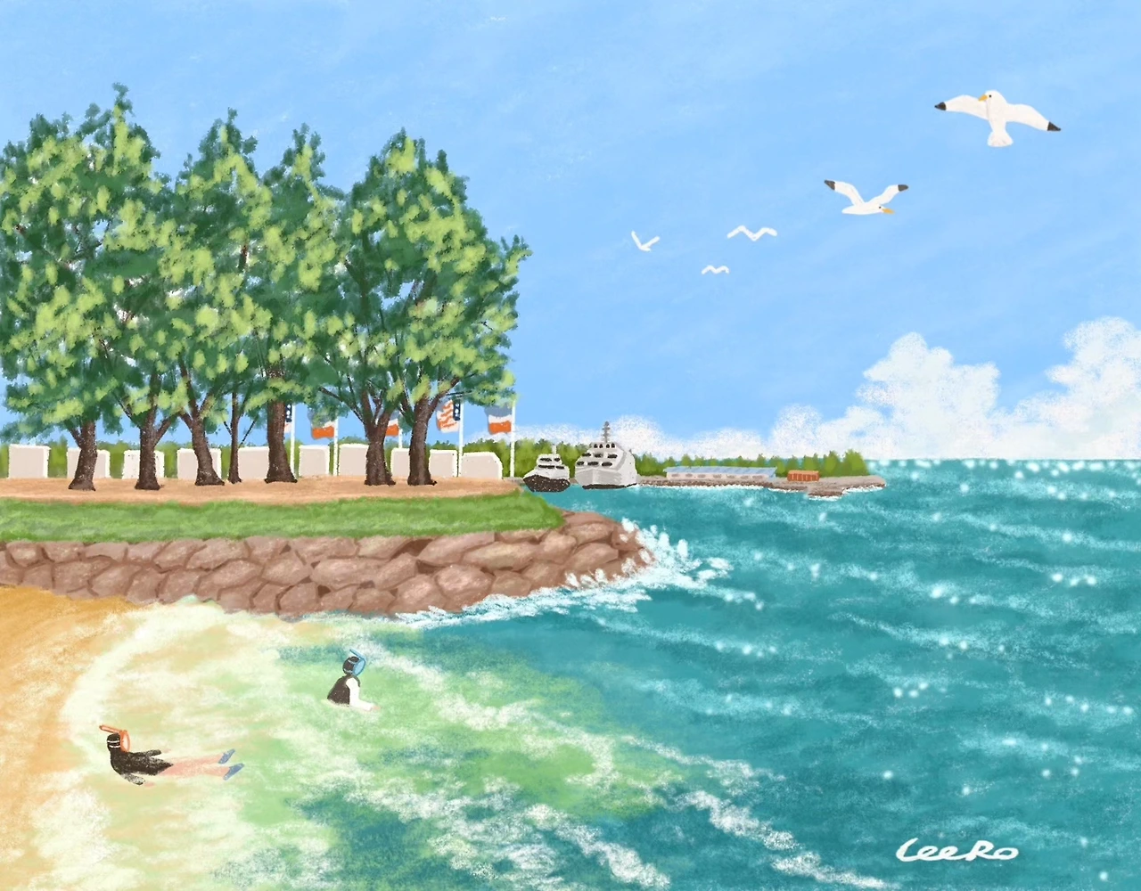 몸과 마음?이 추워지는 계절이라지만, 개인적으로 추위를 잘타서 따스한걸 찾다가 작년 휴양지로 갔던 코타키나발루가 떠올라 드로잉했습니다.