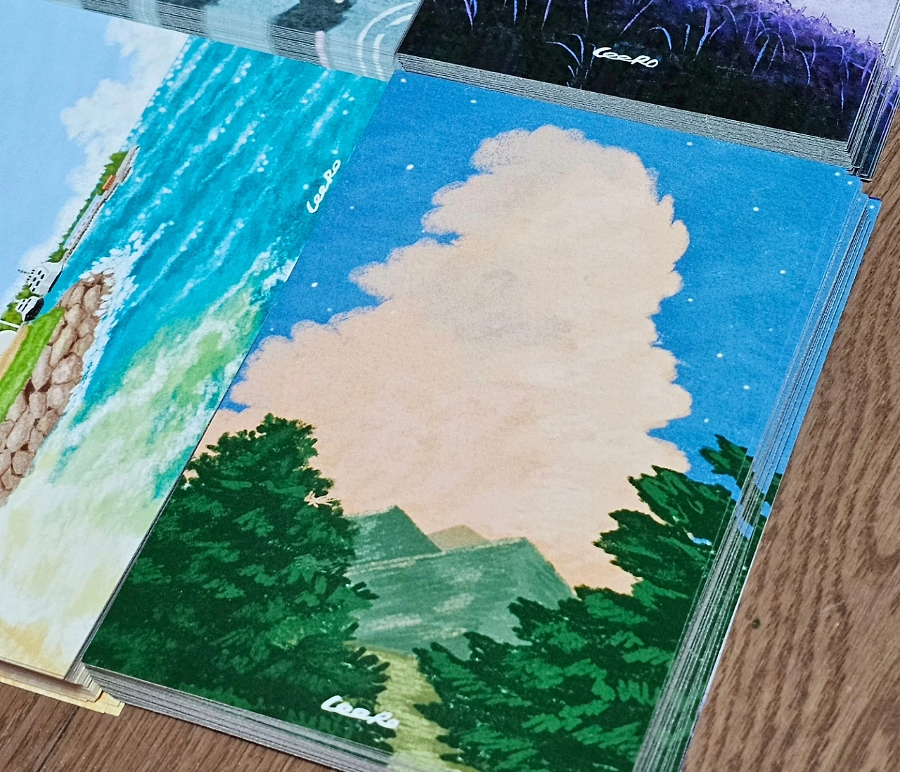 총 두분께 드리고, 그림 엽서는 한 분당 5장씩드립니다,
