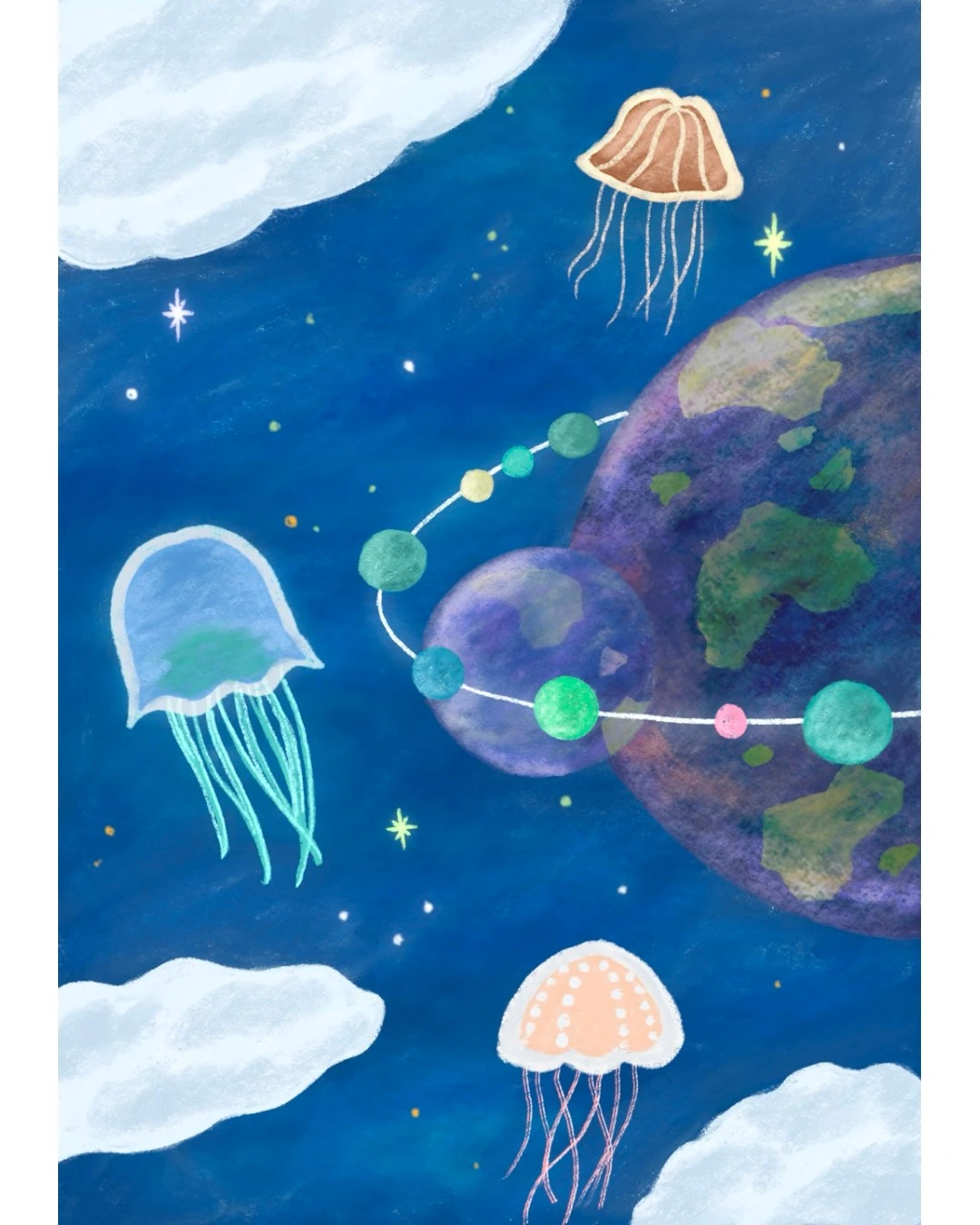 청소년 단편 소설집 '남빛 수면에 잠긴 우리 였어서 '의 표지 일러스트 작업을 완료했습니다^^