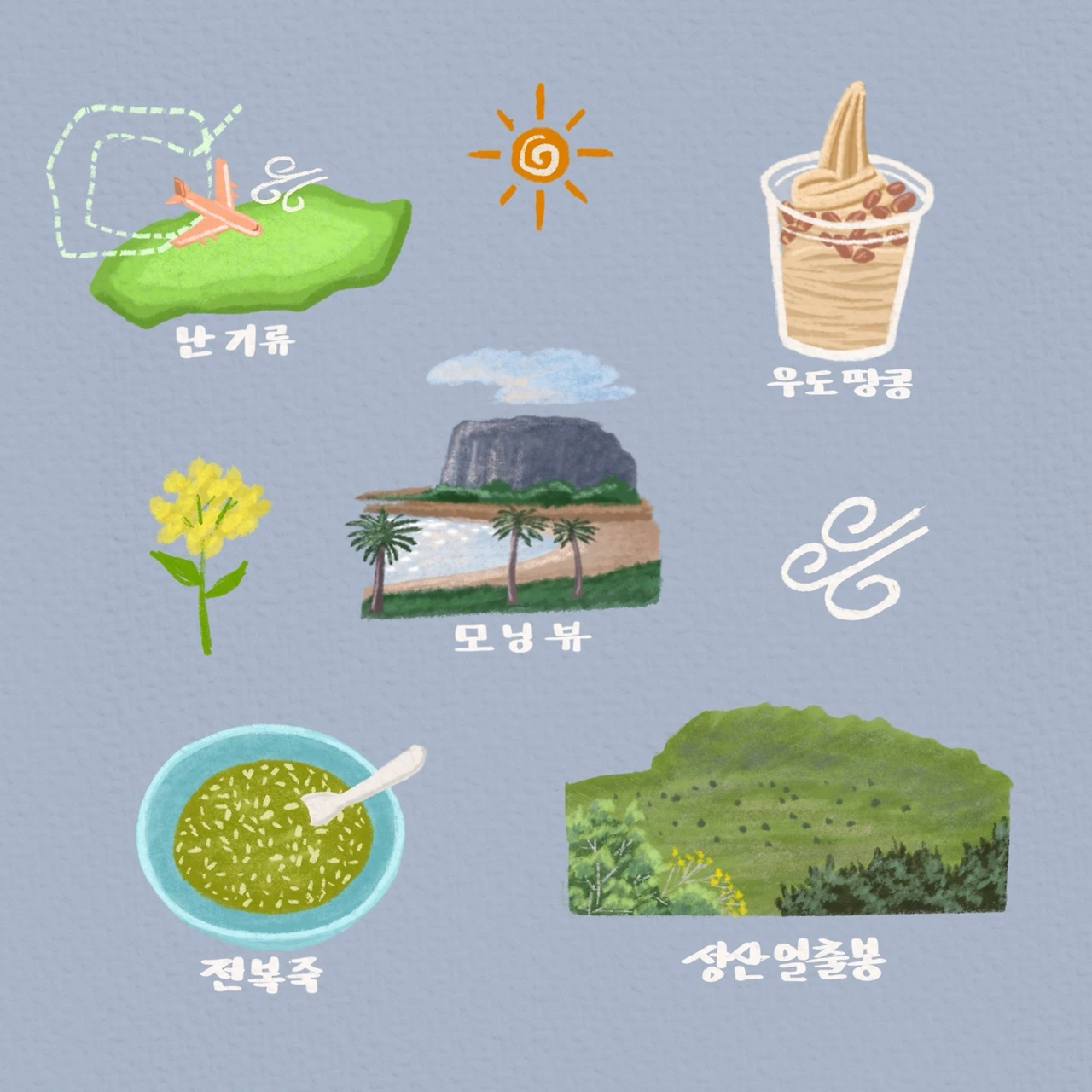 #제주도여행 #난기류 #우도땅콩아이스크림 #모닝뷰 #전복죽 #성산일출봉 #일러스트그램 #감성일러스트 #디지털드로잉 #그림스타그램 #그림작가 #일러스트작가 #여유로운하루 #illustration #illustrator #digitalart