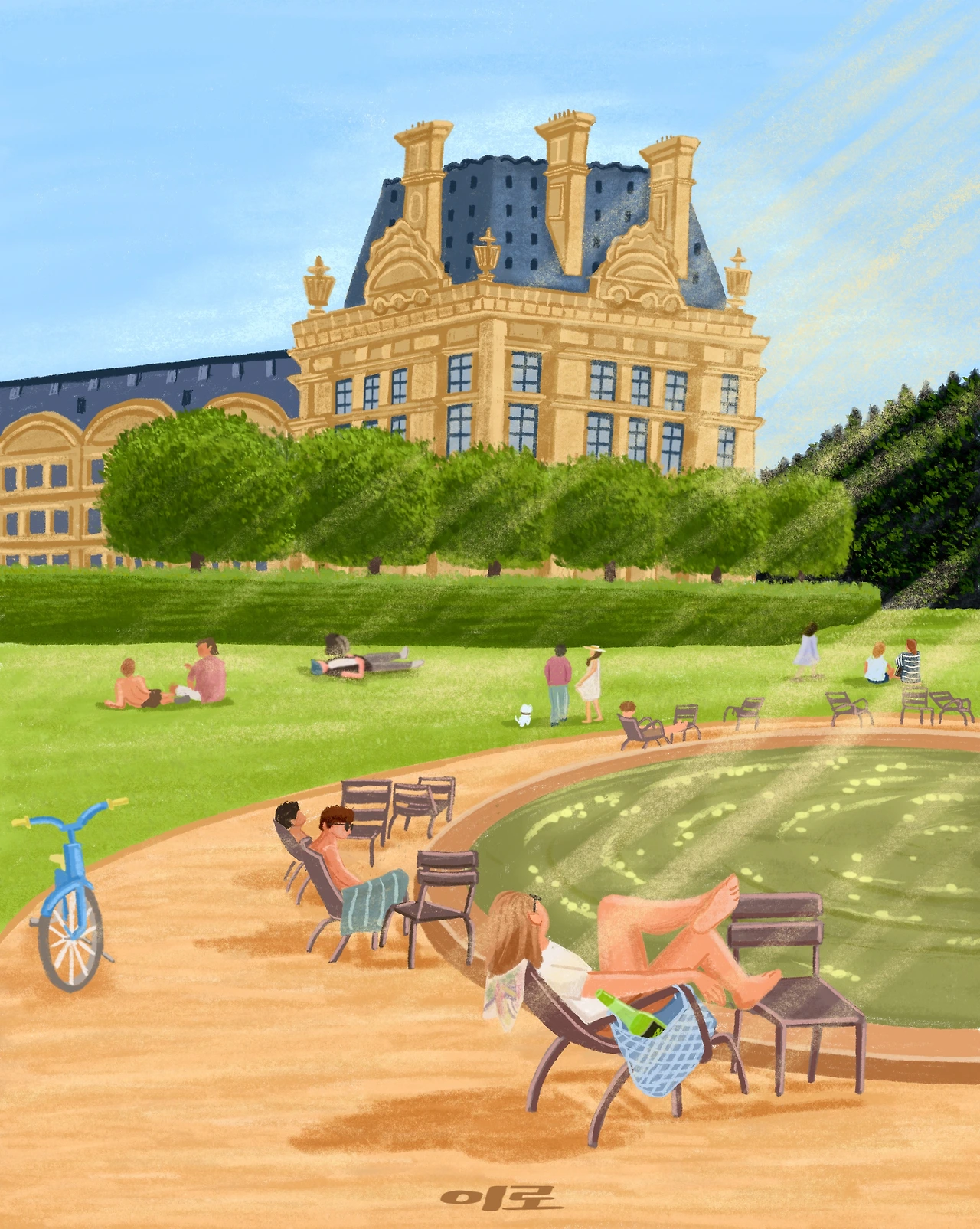 #감성일러스트 #따뜻한그림 #그림스타그램 #디지털드로잉 #파리풍경 #유럽여행 #도심속휴식 #공원산책 #피크닉그림 #햇살가득 #여유로운하루 #휴식 #휴가